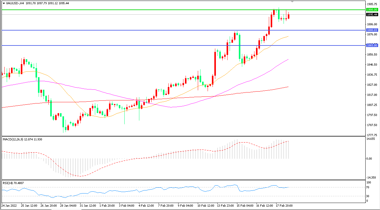 交易策略:在1900.00之上看涨,目标1915.00 1930.00