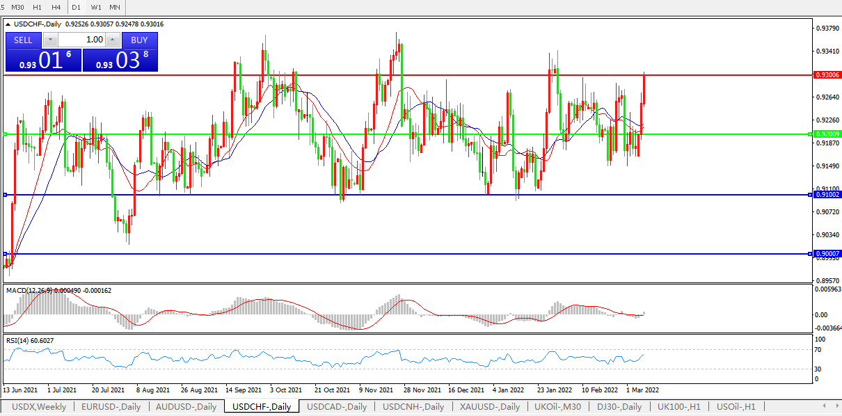 交易策略:0.9200上方看涨,目标0.9300、0.9400