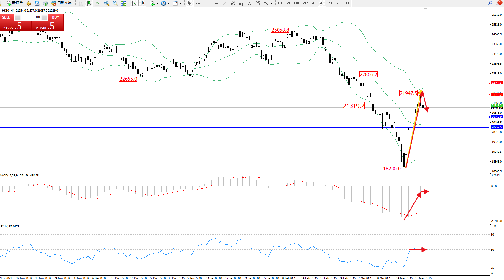 香港恒生指数3月21日(周一)收盘下跌191.06点,跌幅0.89%,报21221.34点;港股高开低走,尾盘三大指数跌幅进一步扩大。恒生科技指数跌1.53%,盘初一度涨超3%。今日南下资金逆势净流入23.4亿港元,大市成交额为1490亿港元。高盛发表研究报告指,美联储宣布加息,为疫情爆发以来首次,对于香港本地银行,高盛预计利率上升将推高净息差,成为2023至2024年主要盈利驱动力。今年港银将迎来拐点,由过去几年的盈利下跌改善至未来两年盈利恢复强劲增长的前景,不过由于高盛削减贷款增长、降低非利息收入并适度提高信贷成本预测,将今年香港本地银行平均每股盈利预测下调6%,并将2023至2024年每股盈利预测及目标价下调约1%至2%,预期未来宏观经济应将因消费情绪回升而有所改善。