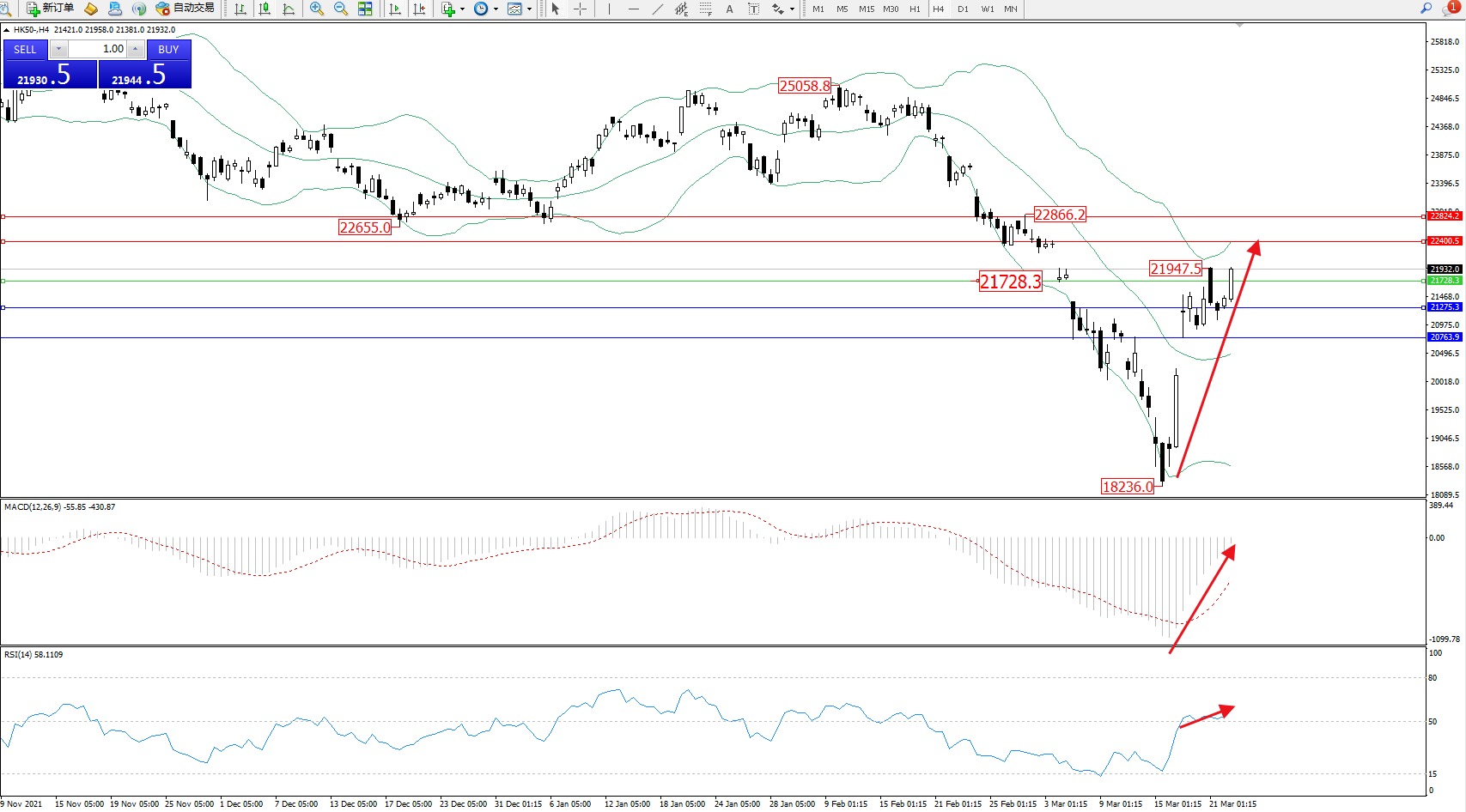 香港恒生指数3月22日(周二)收盘上涨667.94点,涨幅3.15%,报21889.28点;港股尾盘涨幅扩大,回港中概股再度爆发领涨大市,恒生科技指数涨5.37%,重上4600点上方。今日南下资金净流入27.02亿港元,大市成交额为1403亿港元。国家卫生健康委疫情应对处置工作领导小组专家组组长梁万年表示,香港特区政府做出暂不进行全民检测是循证的,是基于疫情防控确定优先的要求而做出的决定。不做全民的核酸检测并不意味着香港现在疫情防控就是躺平,实际上一直围绕着“三减、三重、一优先、四集中”这些战略部署在和疫情作斗争,并且也取得了积极的成效。