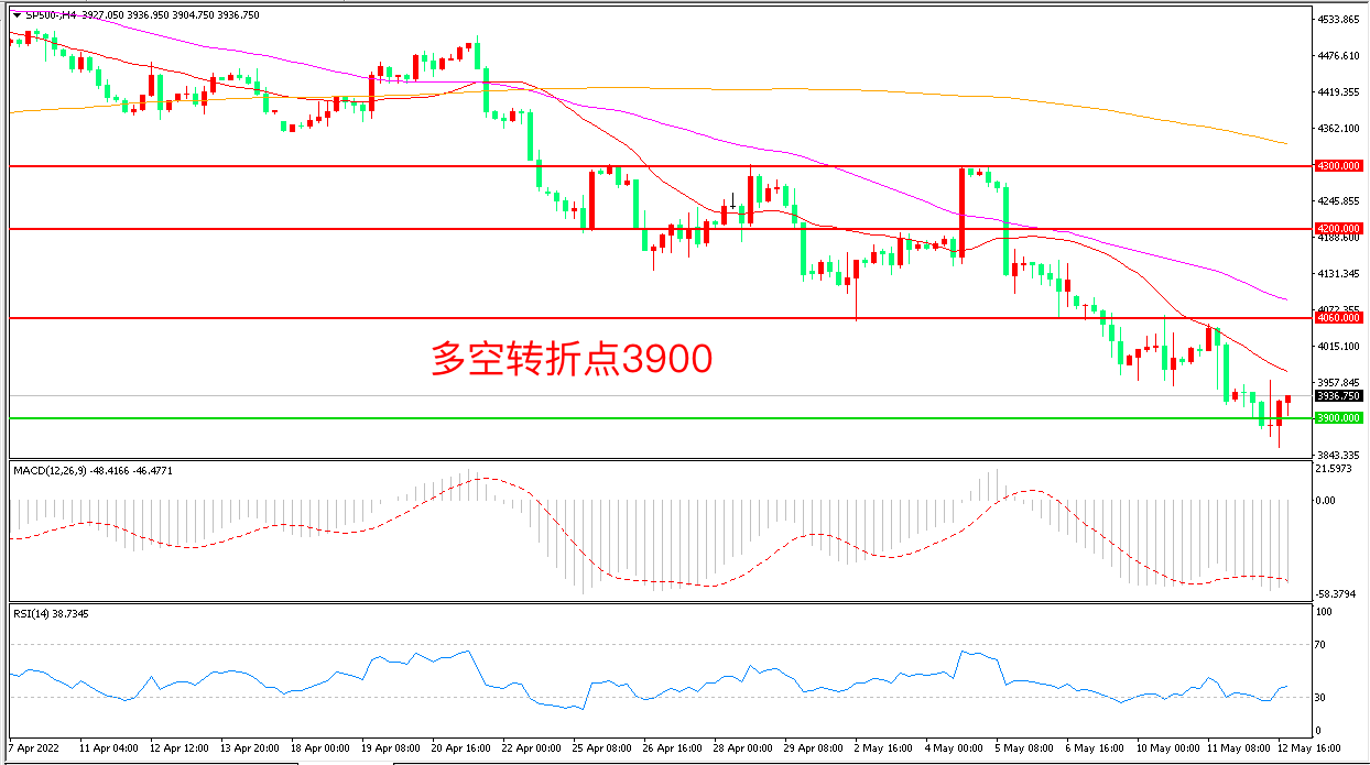 周四(5月12日),美联储主席鲍威尔再次重申,美联储有意保持这样的激进加息步调,美股市场抛售潮延续,标普500持续下跌,收报3922.25点。自3月29日高点以来,美国主要股指已缩水6.3万亿美元,原因是人们担心通胀和利率上升导致经济下滑,随着各国央行收紧货币政策,包括已受重创科技股在内的成长股可能继续承压,标普预计仍有下跌空间。