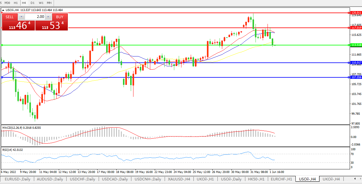 交易策略:在113.50之下看跌,目标110.00     107.00