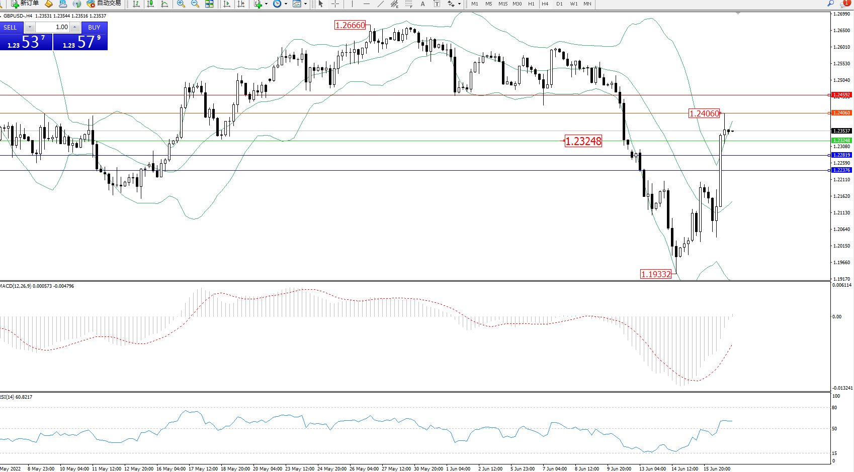交易策略:1.23248上方看涨,目标1.24060、1.24592