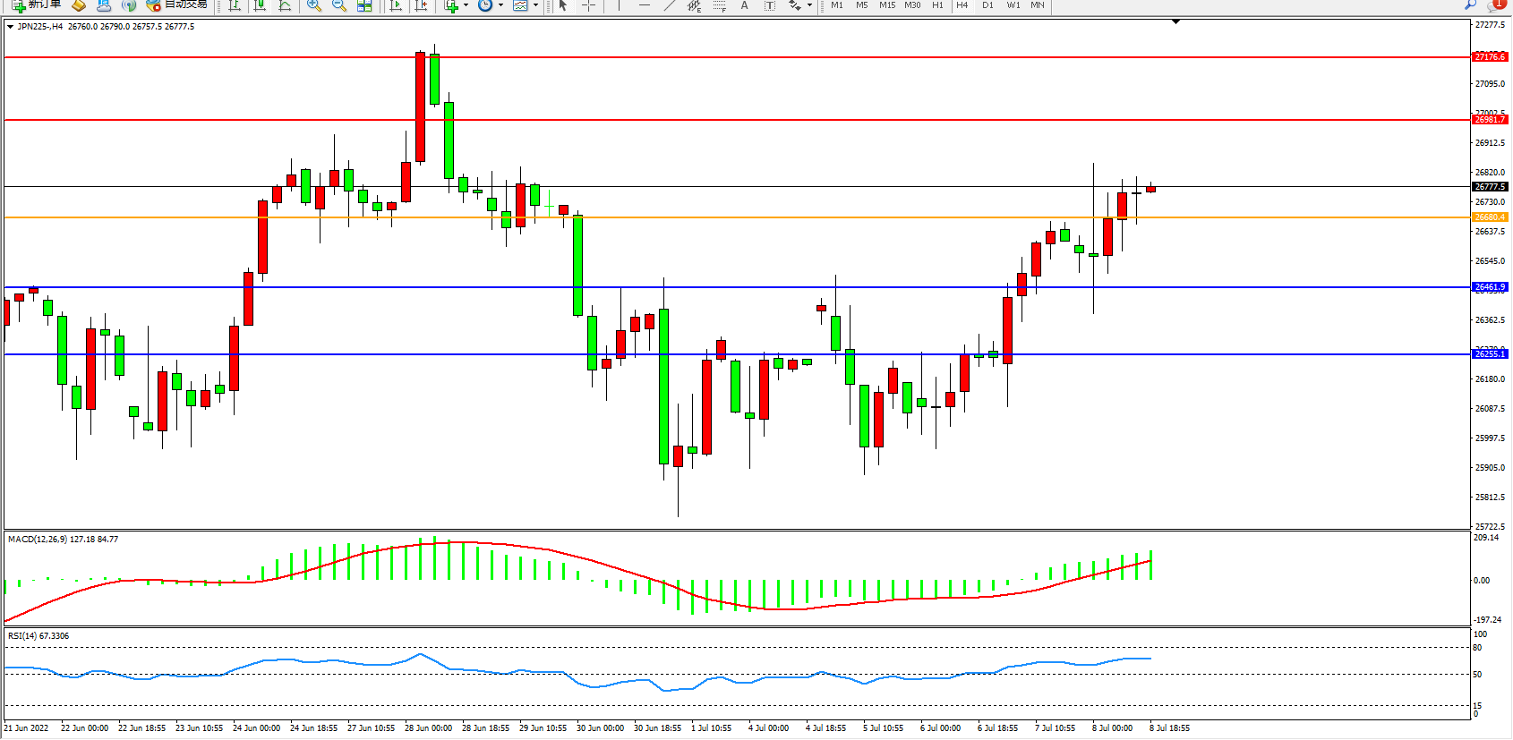 日经225指数7月8日(周五)收盘上涨85.97点,涨幅0.32%,报26576.50点。日本的国际收支数据显示,日本投资者在5月份连续第七个月卖出美国主权债,创2005年有数据以来的最长减持周期。