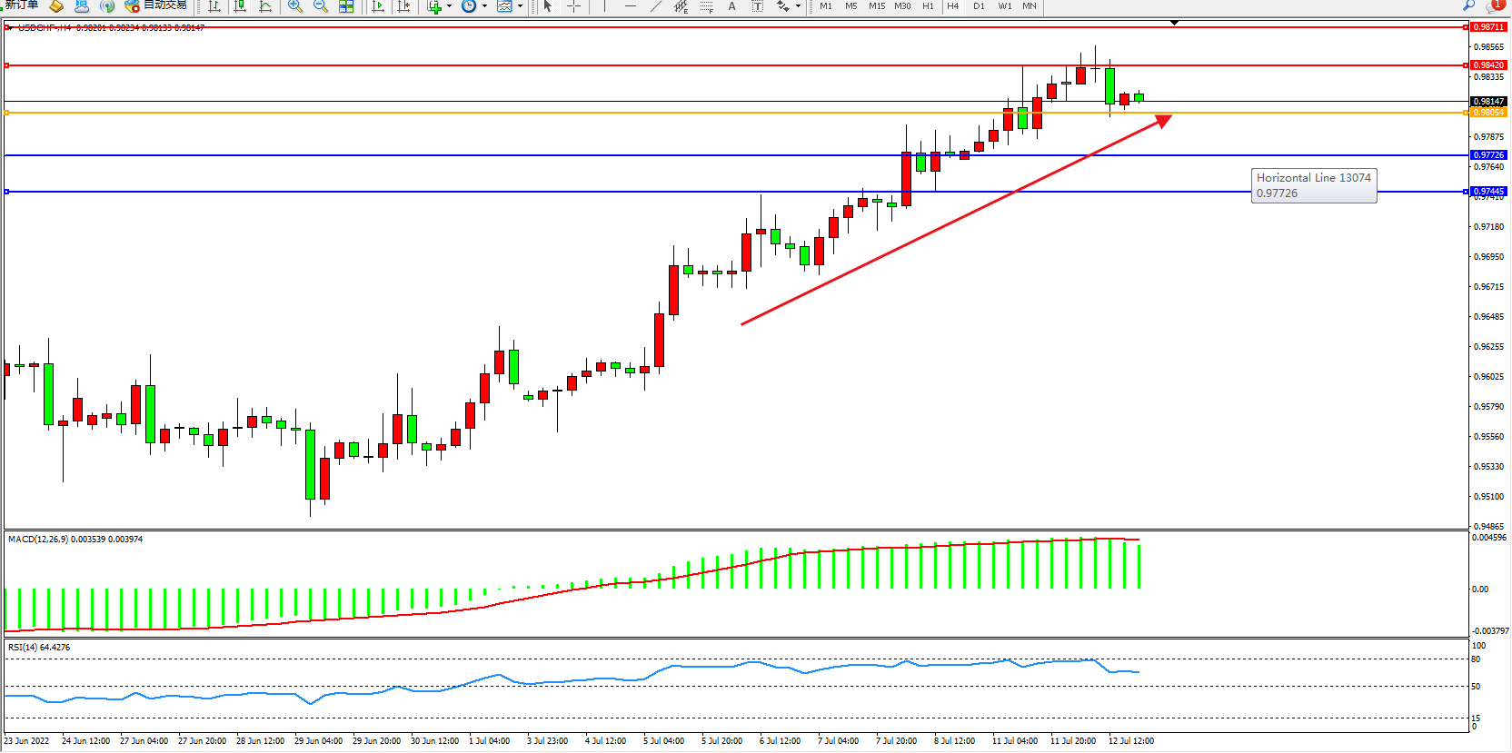 交易策略:0.98054上方看涨,目标0.98420、0.98711