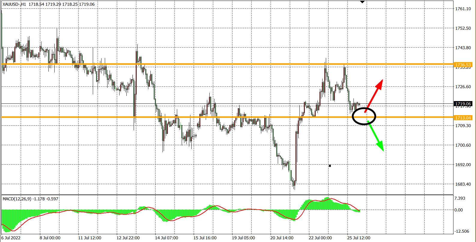 交易策略:在1713.00之下看跌,目标1700.00 1680.00