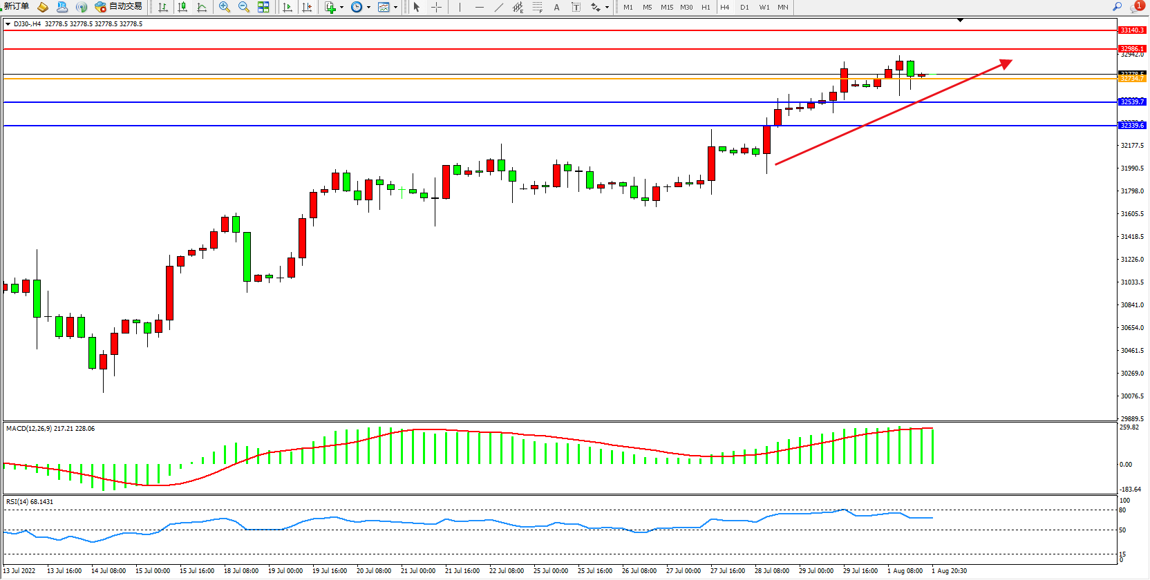 道琼斯指数8月1日(周一)收盘下跌46.53点,跌幅0.14%,报32798.60点;美国银行认为,在经济更显著放缓的情况下,美国10年期国债收益率未来6至12个月内可能达到2%。
