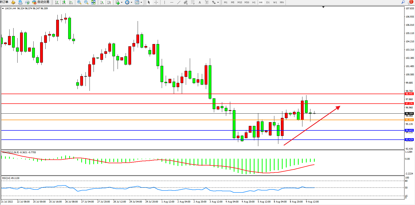 布油维持96.309附近震荡, 因对经济放缓可能削减需求的担忧与经由乌克兰的俄罗斯至欧洲Druzhba的输油管道暂停部分石油出口的消息共同影响市场。