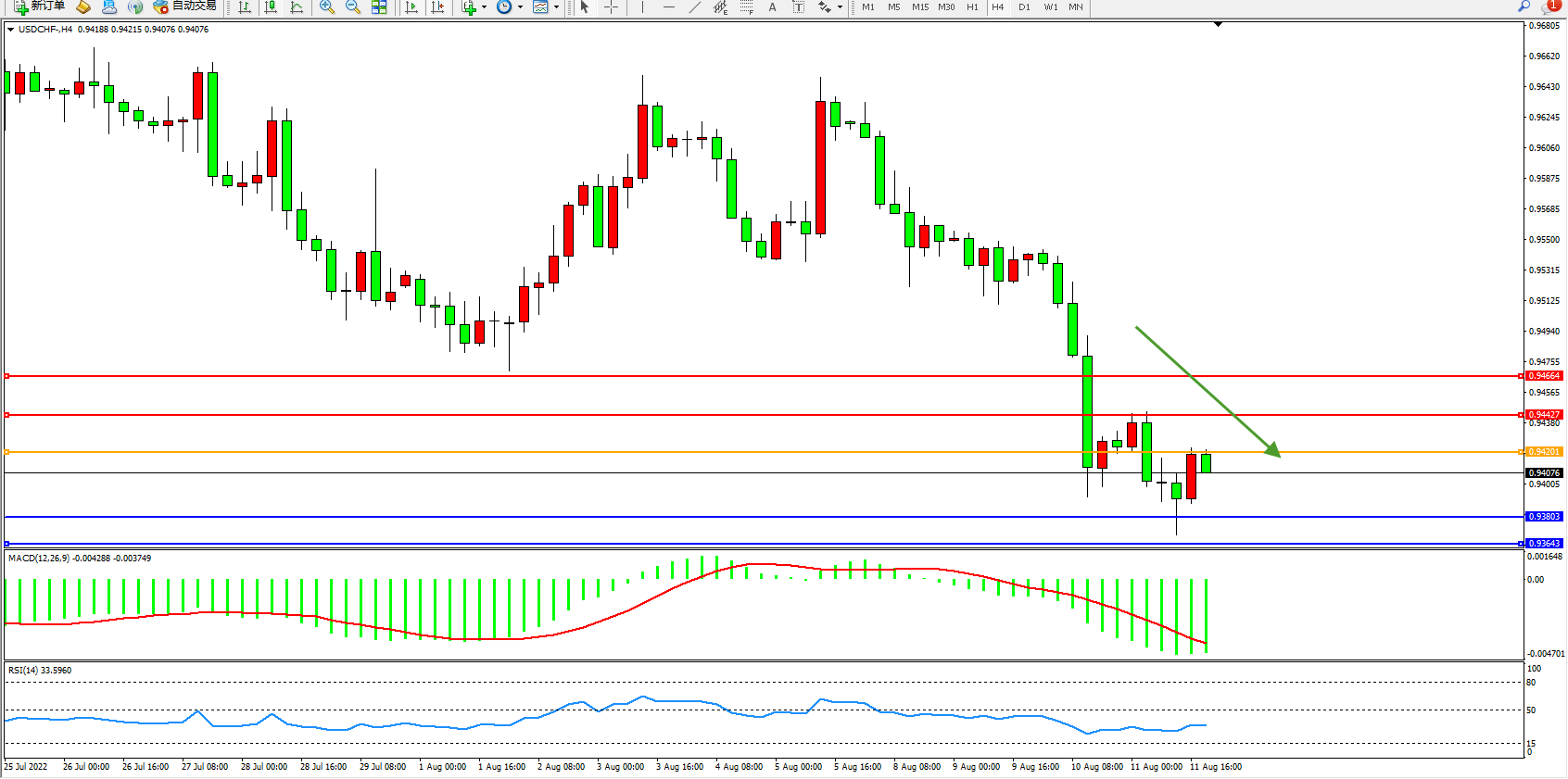 备选策略:0.94201上方看涨,目标0.94427、0.94664