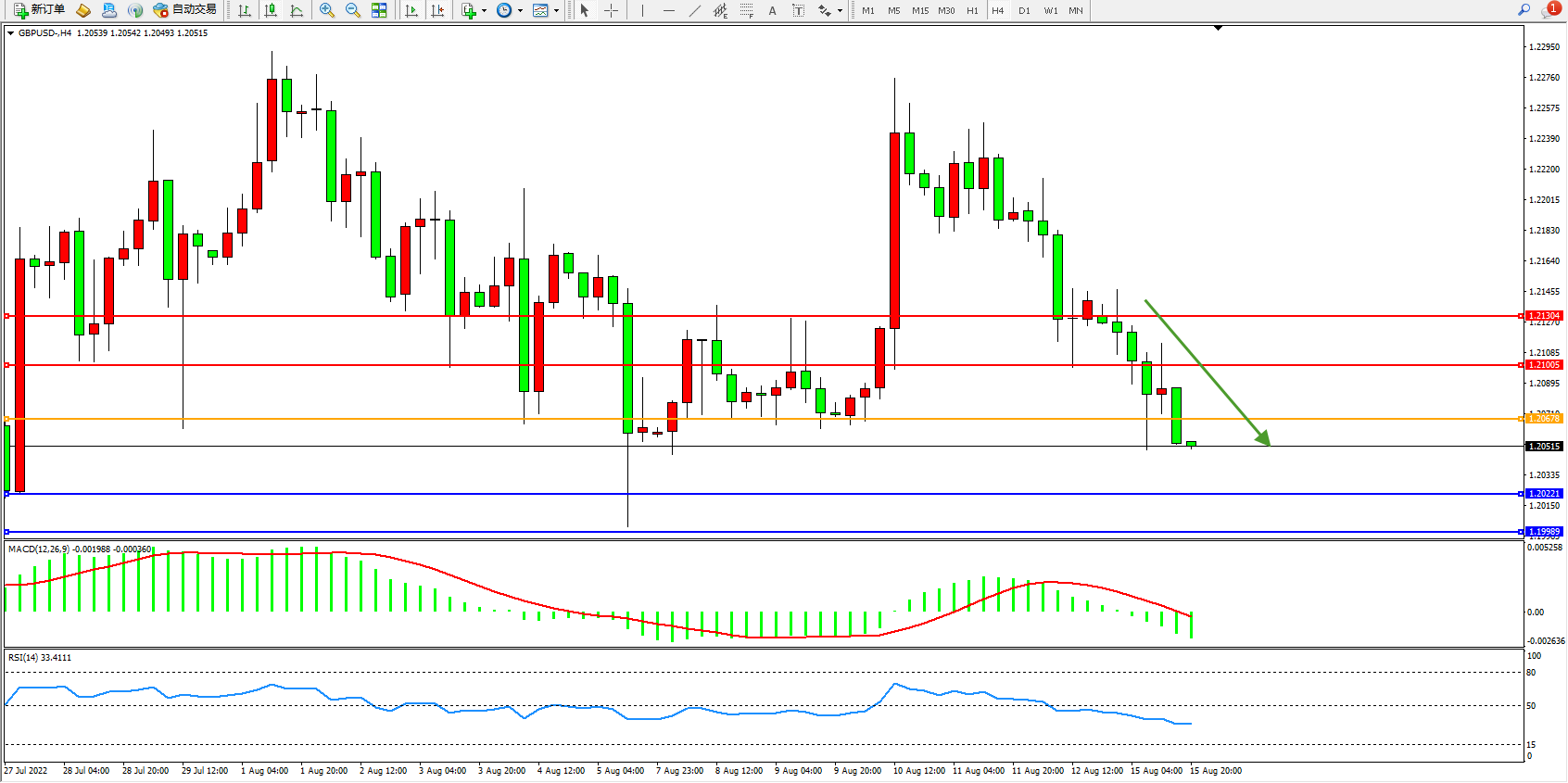 英镑美元GBPUSD ——4小时K线图显示: