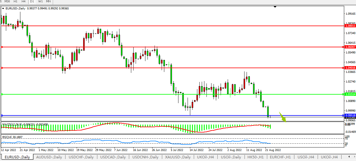 欧元兑美元再次跌穿平价,投资者愈发担心美国和欧洲加息以遏制通胀的行动会削弱全球经济。