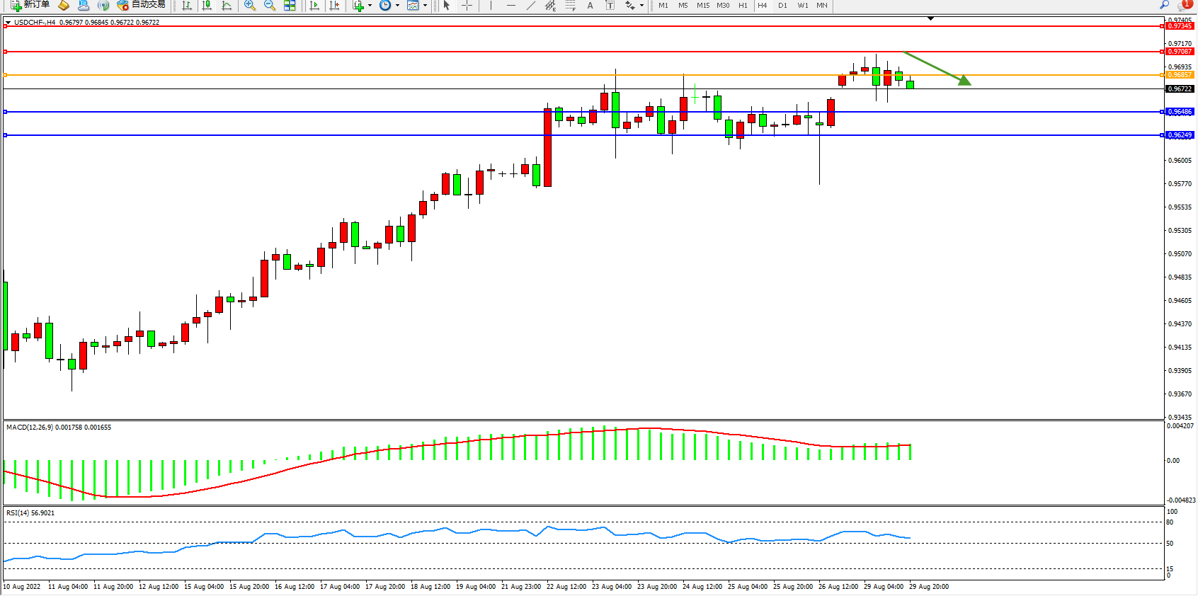 交易策略:0.96857下方看跌,目标0.96786、0.96249