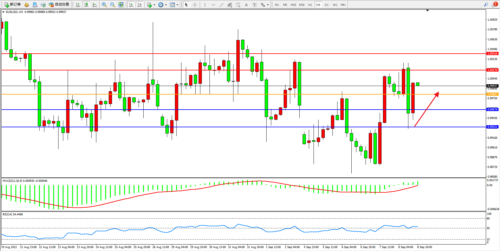 交易策略:0.99807上方看涨,目标1.00170、1.00416