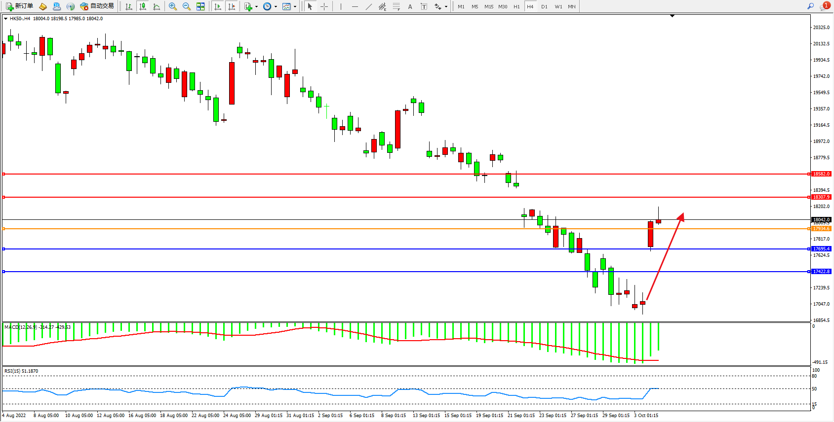 4小时图看:低位多头动力跳开高走,持续上扬,短期看涨情绪开始涌入,市场多头不断进场,MACD指标处于空头区域低位震荡上移,RSI指标处于50均衡线附近弱势偏好;