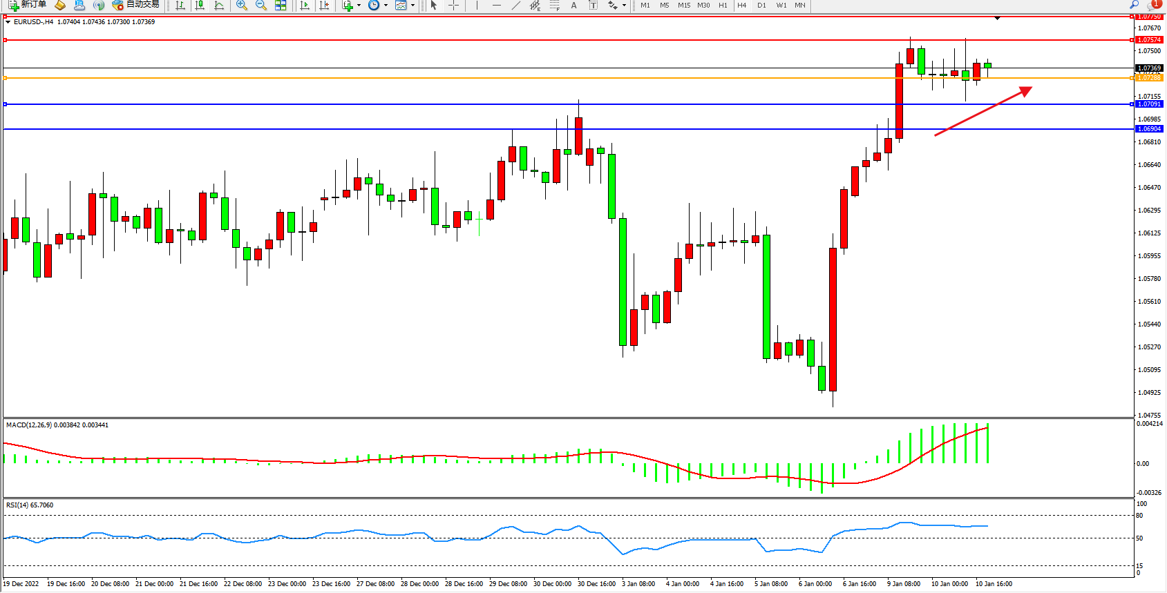 交易策略:1.07288上方看涨,目标1.07574、1.07750