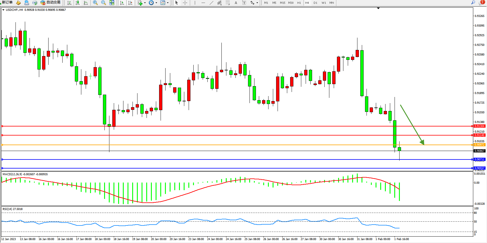 USDCHF:低位急跌 USDCHF  XAUUSD
