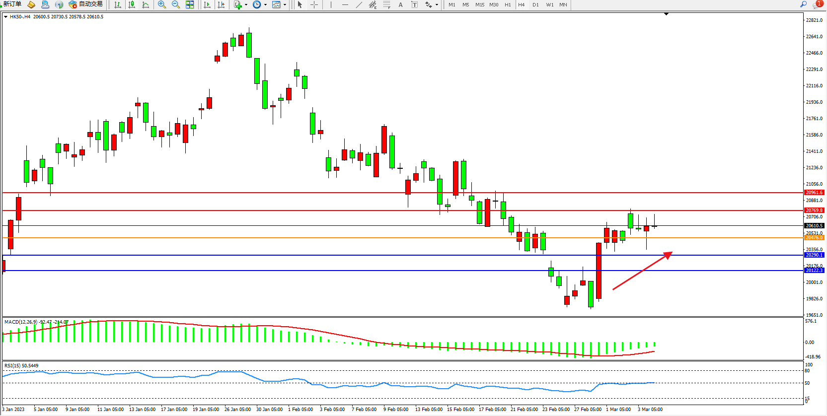 香港恒生指数3月6日(周一)收盘上涨35.65点,涨幅0.17%,报20603.19点;港股三大指数窄幅震荡,恒生科技指数午后一度转涨,最终下跌0.81%,恒指上涨0.17%,相对较强。盘面上,大型科技股普跌令大市低迷,南下资金净流入40.09亿港元,大市成交额为1091亿港元。军工股、石油股、电力股、濠赌股纷纷走俏,三桶油连升4日,中海油创历史新高。