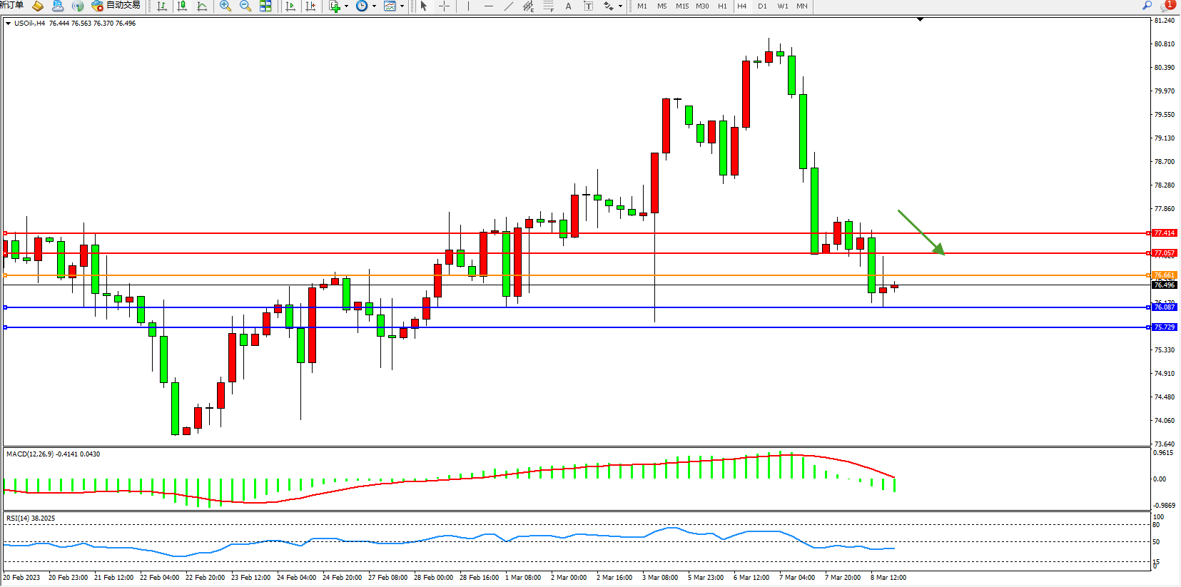 阻力位:77.057 77.414