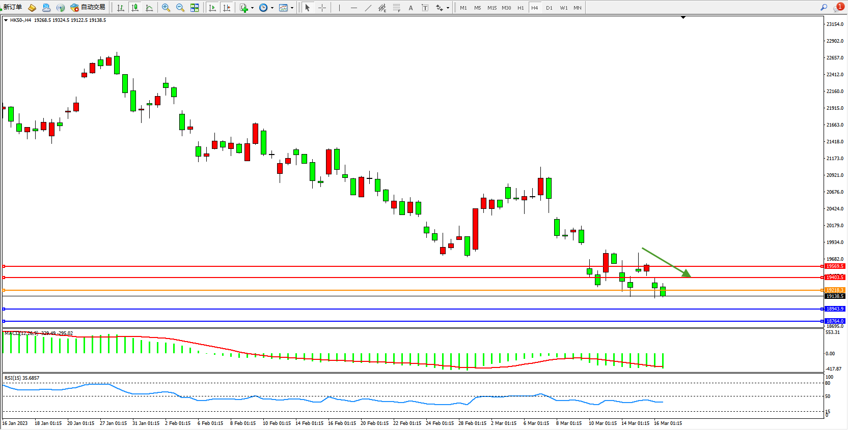 香港恒生指数3月16日(周四)收盘下跌335.96点,跌幅1.72%,报19203.91点;瑞信危机致市场再度陷入恐慌,港股早盘小幅冲高后午后跌幅扩大,恒指一度跌至2.2%,最终下跌1.72%刷新调整低价,恒生科技指数跌1.41%险守3800点关口。大型科技股普遍走低,百度正式发布文心一言,股价大跌超6%,南下资金净流入36.94亿港元,大市成交额为1113亿港元。