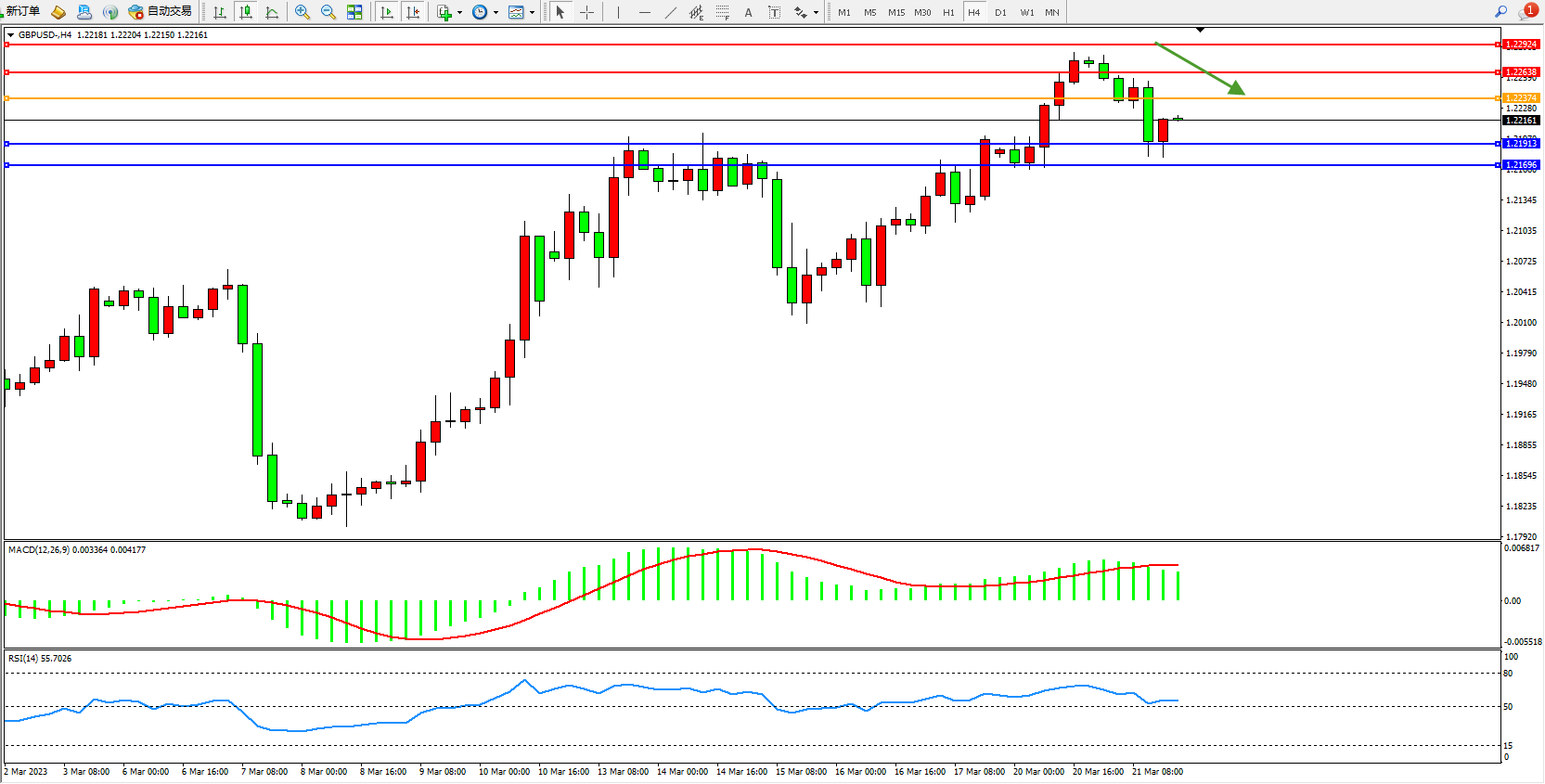 英镑美元GBPUSD ——4小时K线图显示: