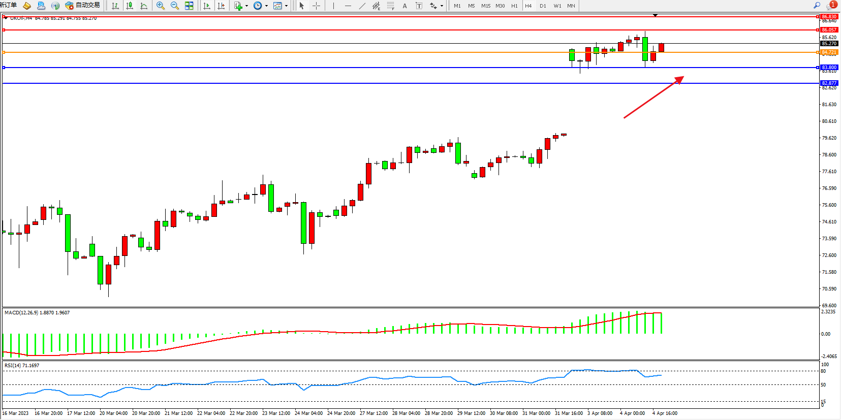 布油维持85.270附近震荡,美国总统拜登领导的政府多次抨击OPEC+减产,称其对家庭造成通胀影响,并指责其与受到制裁的俄罗斯关系密切。限制生产导致供应减少,引起进口国油价上涨,进而推高整体通胀数据。