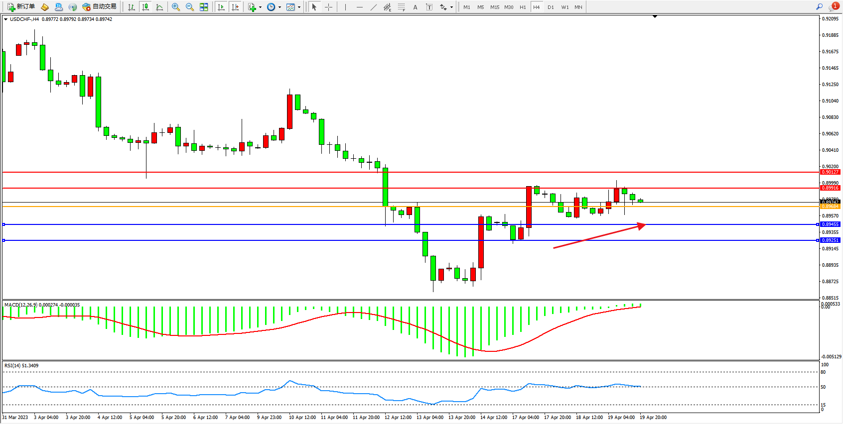 交易策略:0.89684上方看涨,目标0.89916 0.90127