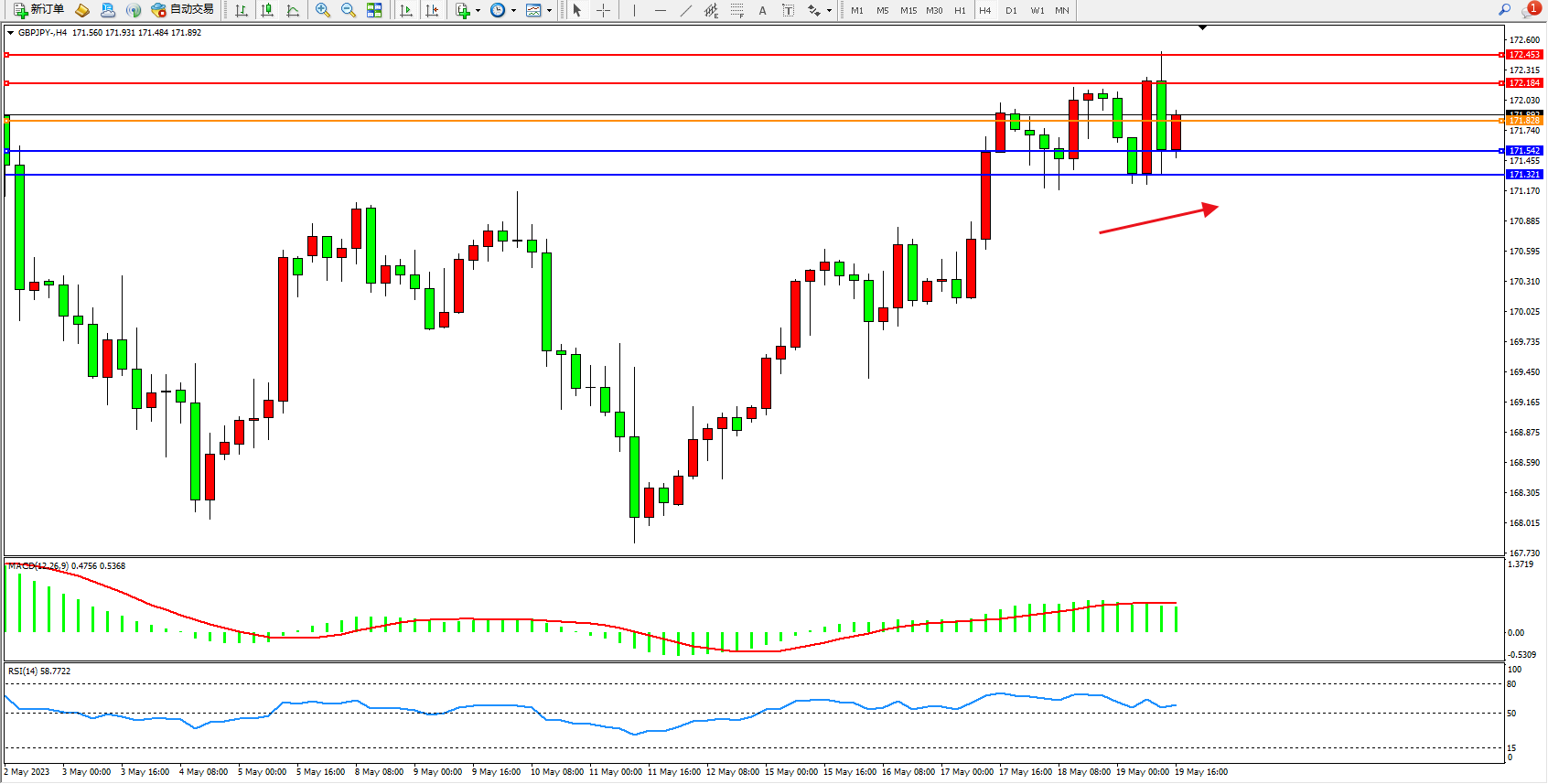 交易策略:171.828上方看涨,目标172.184 172.453