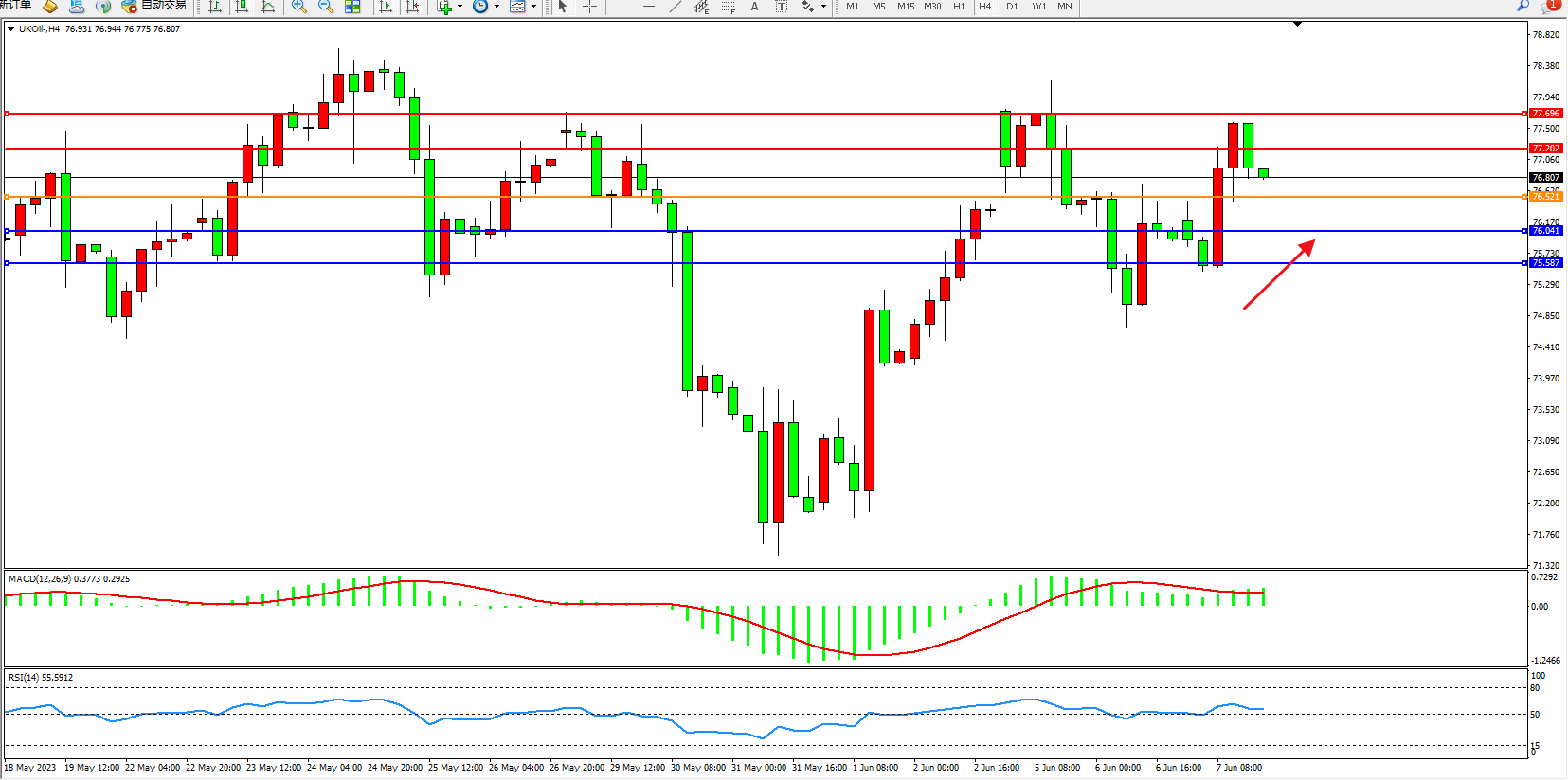 布油维持76.807附近震荡,EIA报告:除却战略储备的商业原油库存减少45.2万桶至4.59亿桶,降幅0.1%。06月02日当周美国国内原油产量增加20.0万桶至1240.0万桶/日。