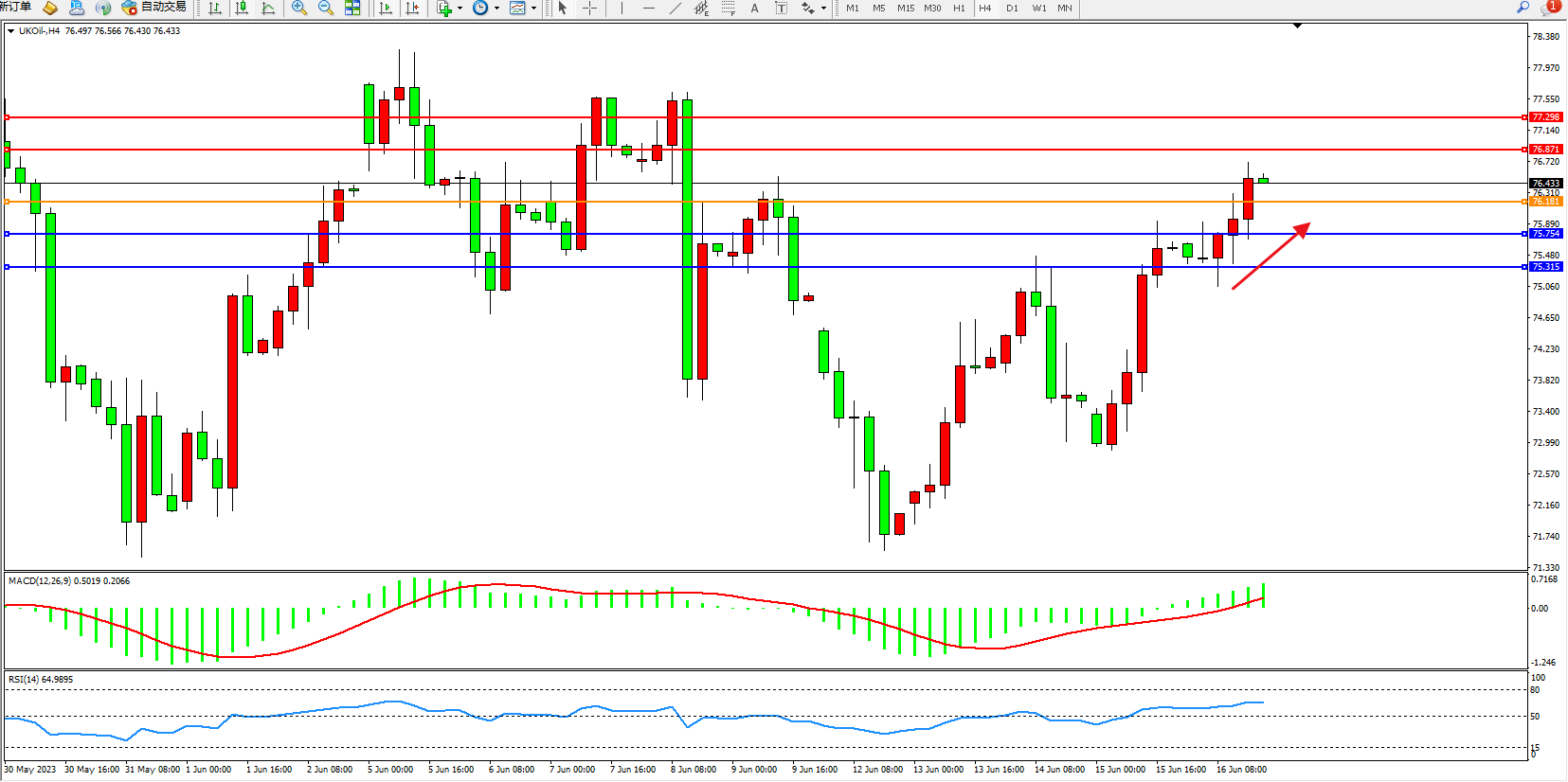 阻力位:76.871  77.298