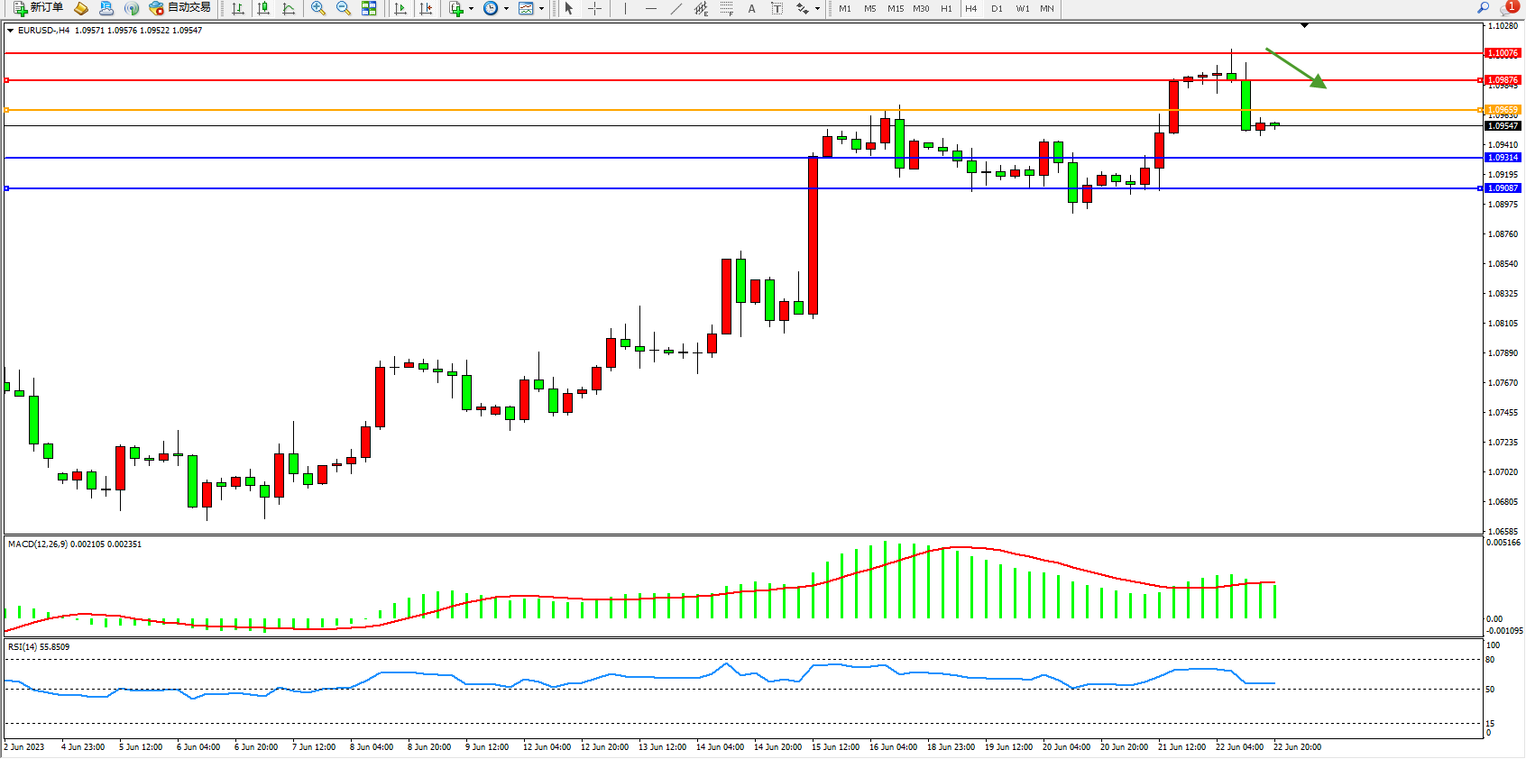 备选策略:1.09659上方看涨,目标1.09876  1.10076
