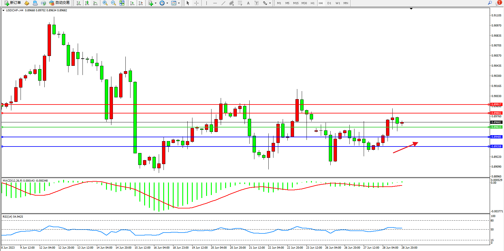 交易策略:0.89615上方看涨,目标0.89802 0.89917