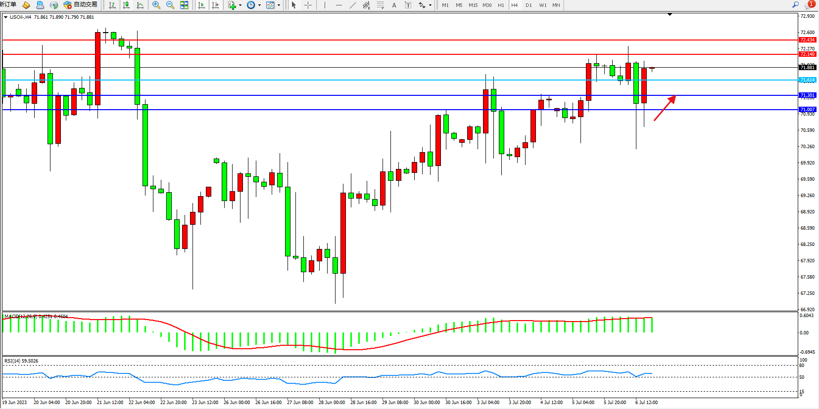 原油维持71.881附近震荡,美国至6月30日当周EIA俄克拉荷马州库欣原油库存 -40万桶,前值120.9万桶,美国至6月30日当周EIA原油库存 -150.8万桶,预期-98.3万桶,前值-960.3万桶。