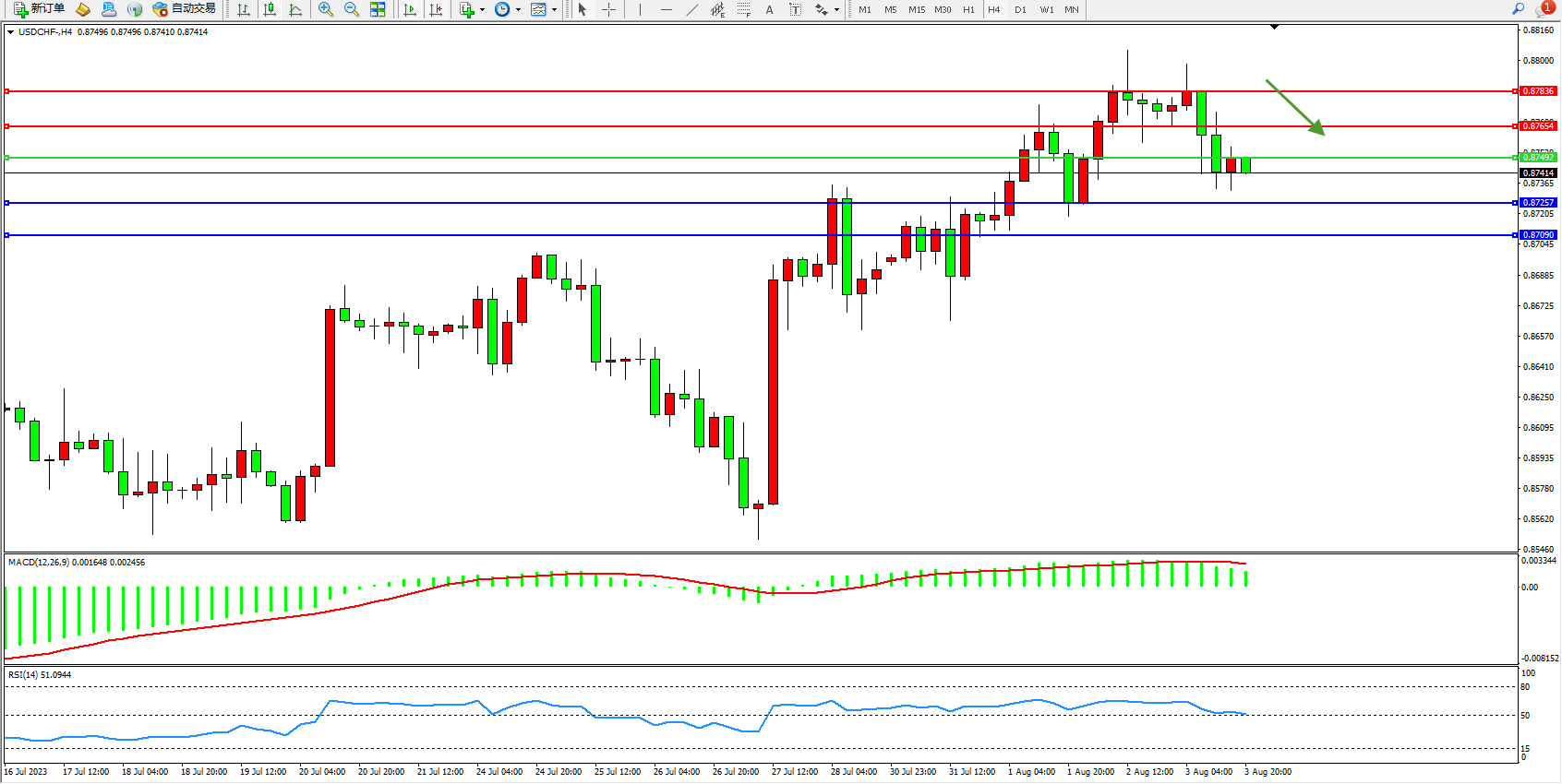 备选策略:0.87492上方看涨,目标0.87654  0.87836