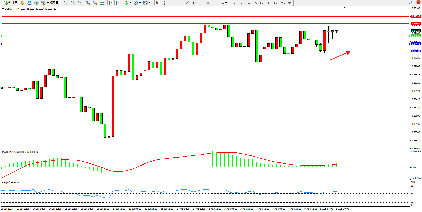 交易策略:0.87625上方看涨,目标0.87860 0.87998