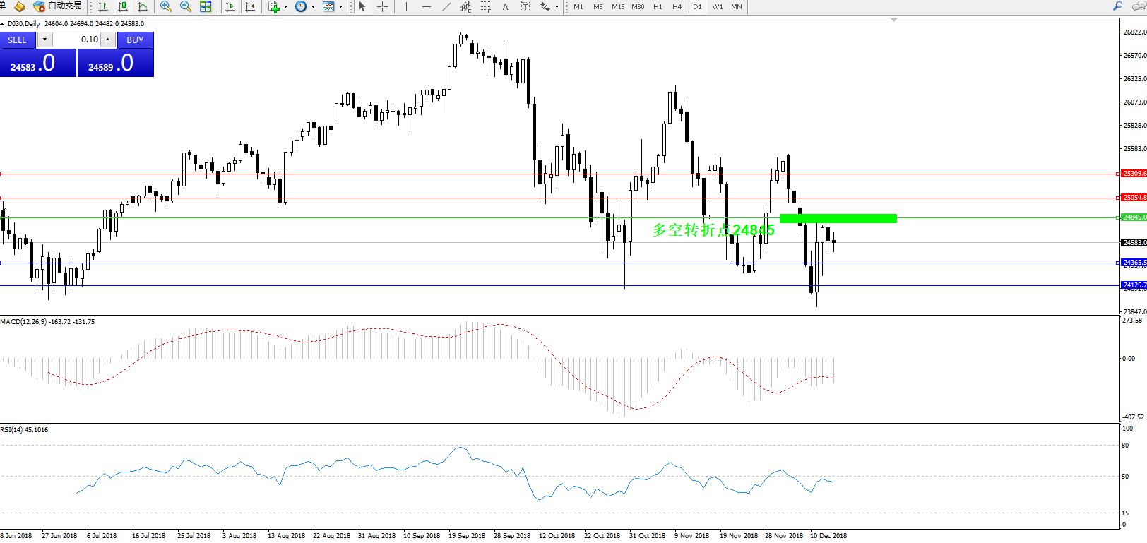 道琼斯工业平均指数收涨70.11点,涨幅0.29%,报24597.38点;盘中交投震荡,因投资者青睐防御性板块,而最大的拖累来自金融和非必需消费品类股。因美元走高,投资者攫取全球股市收益。有迹象显示中美贸易紧张关系缓和,提振了全球股市。