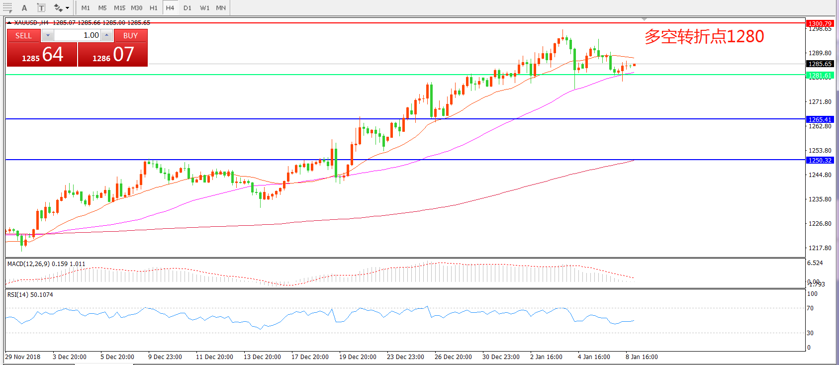 多空转折点:1280.00