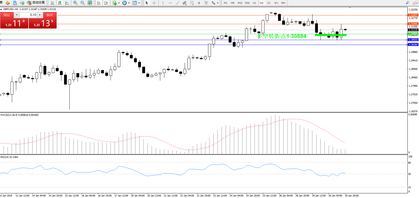 交易策略:1.30884上方看涨,目标1.314411.31927