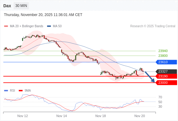 在 23610 之下,看跌,目标价位为 23190 ,然后为 23000 。