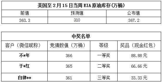 2019年2月第3期“EIA大竞猜”活动的中奖结果已出,获奖信息如下: