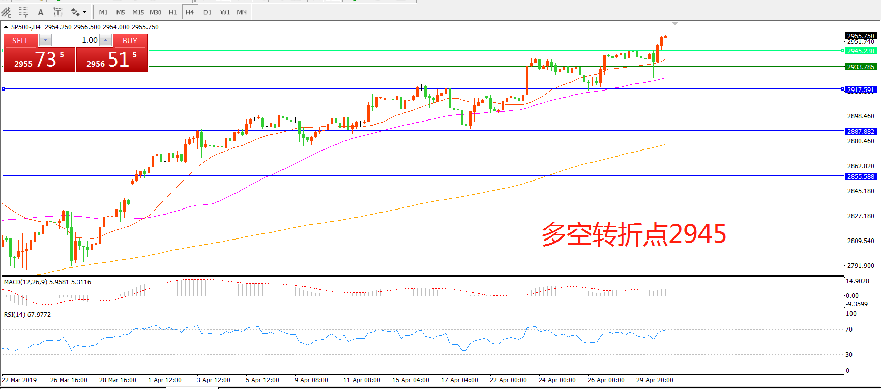 多空转折点:2945.00