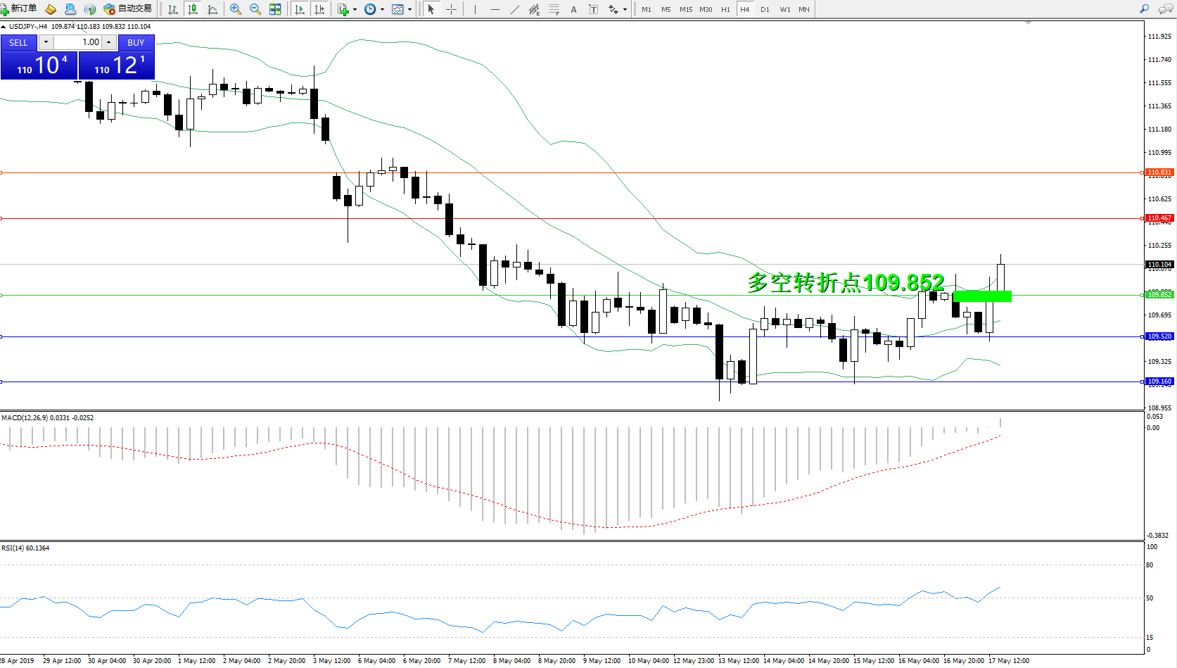 因全球贸易紧张情绪再度升温。除了贸易领域的负面消息之外,周末澳洲大选的不确定结果,以及下周欧洲议会选举,连同悬而不决的英国脱欧形势,也使得全球市场资金对于避险资产的需求居高不下,这令美元兑日元的持续反弹变得困难重重。这也意味着,在日线图上上破10日均线遇阻之后,美元对日元在周四的反弹仅仅是技术性的,5月以来的下行趋势依然稳固。在贸易环境很难再短期内彻底改善的背景下,美元兑日元此后下探109关口仍是大势所趋。