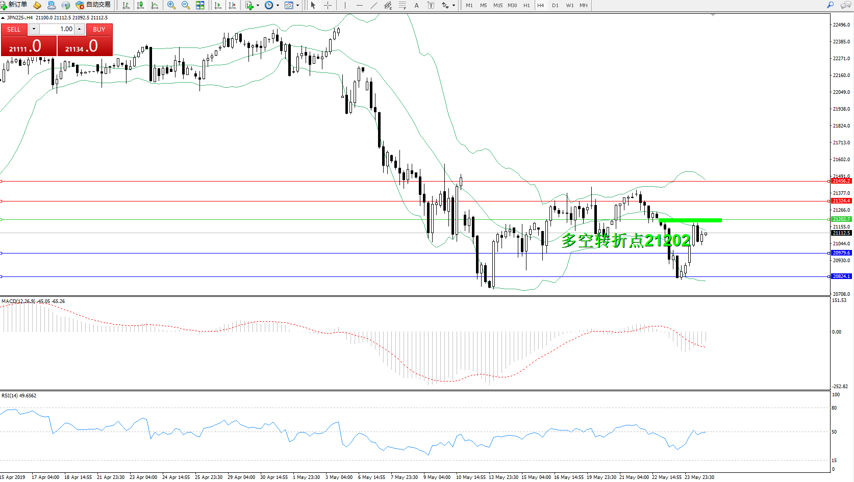 技术点评:持续宽幅震荡数日,再次V型反转拉升上行,触及布林带中轨后上行动力减弱,MACD指标多头开始上行有回归0轴线的迹象,RSI指标处于50均衡线下方持续震荡;