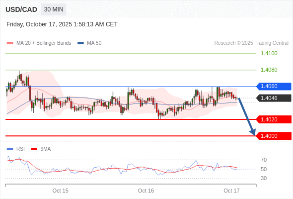 交易策略: 在 1.4060 之下,看跌,目标价位为 1.4020 ,然后为 1.4000 。