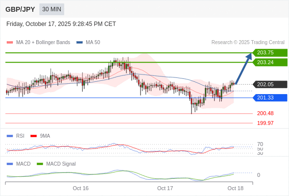 英镑/日元 当日内: 看涨,当 201.33 为支撑位。
