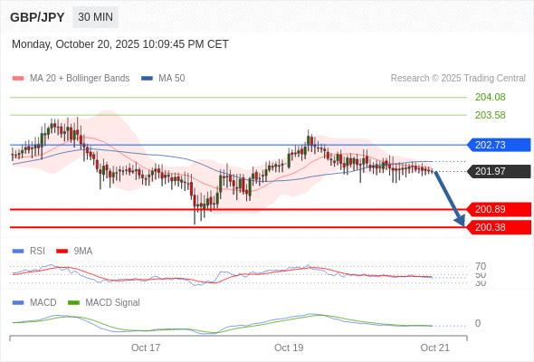 英镑/日元 当日内: 看跌,在 202.73 之下。