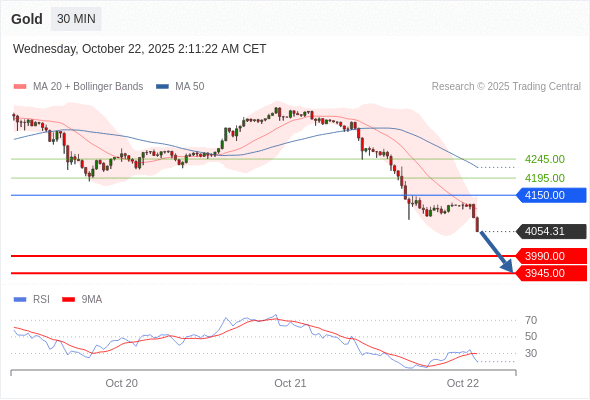 在 4150.00 之下,看跌,目标价位为 3990.00 ,然后为 3945.00 。