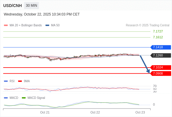 美元/人民币 当日内: 看跌,在 7.1418 之下。