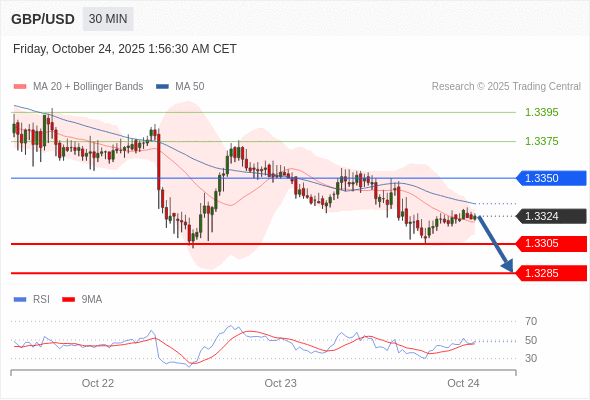 在 1.3350 之下,看跌,目标价位为 1.3305 ,然后为 1.3285 。