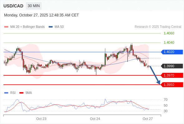 在 1.4020 之下,看跌,目标价位为 1.3970 ,然后为 1.3950 。