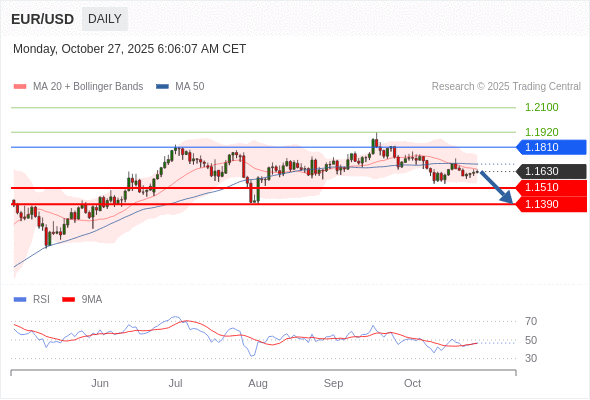 在 1.1810 之下,看跌,目标价位为 1.1510 ,然后为 1.1390 。